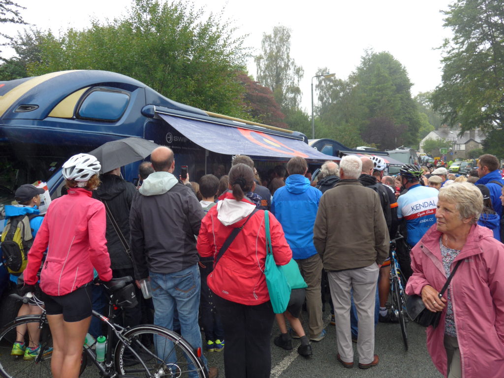 It would have been understandable if this hadn’t happened.  Sir Bradley looked tired – he’d had to push his bike up The Struggle , and finished fifth to last.  I wouldn’t have blamed him if he’d leapt off his bike, dived into the team bus and closed the doors. The fact that he didn’t do this, but smiled for countless selfies and signed hundreds of autographs is one of the many reasons why he’s so popular.